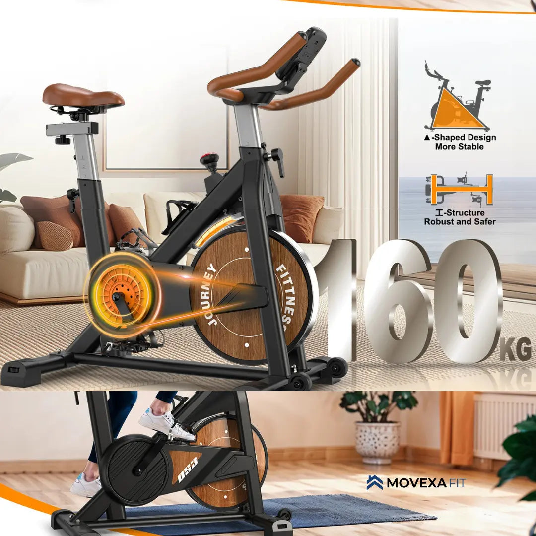 Le vélo d’appartement Movexa Fit Elite est conçu pour des entraînements cardio à domicile, avec une structure renforcée pour un usage intensif.